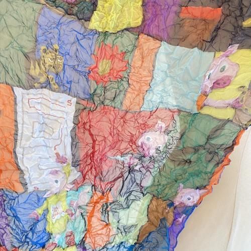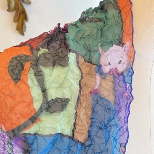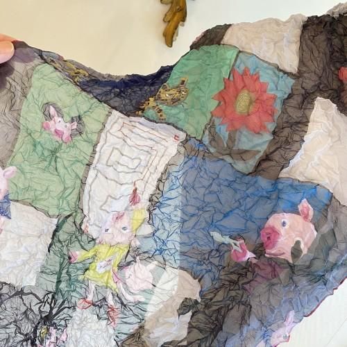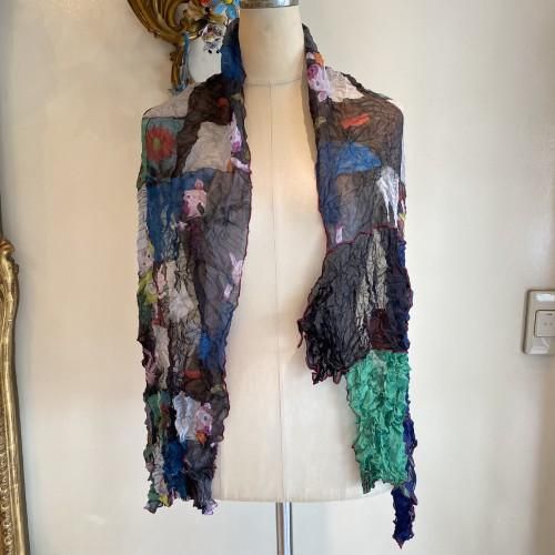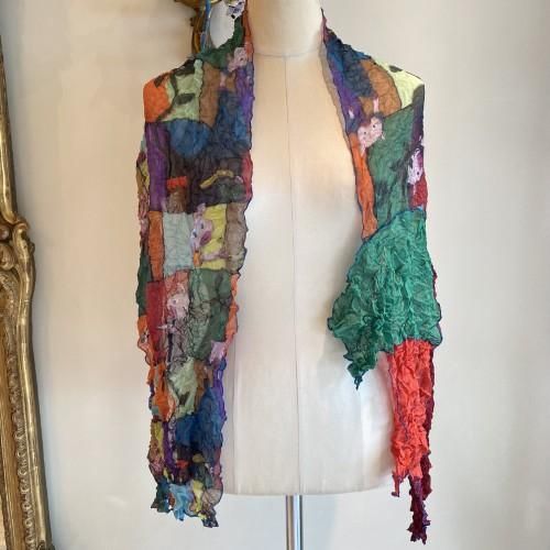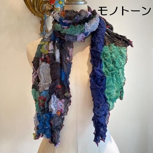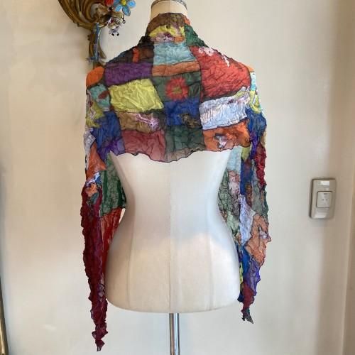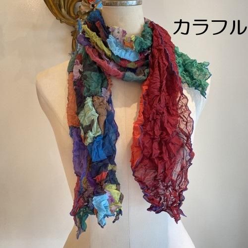 定番プリーツ加工ショールです。今回はカラフルモザイク柄でお楽しみくださいね。手洗い可。日本製。