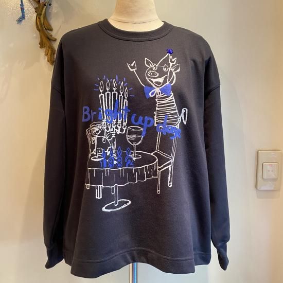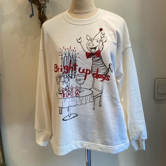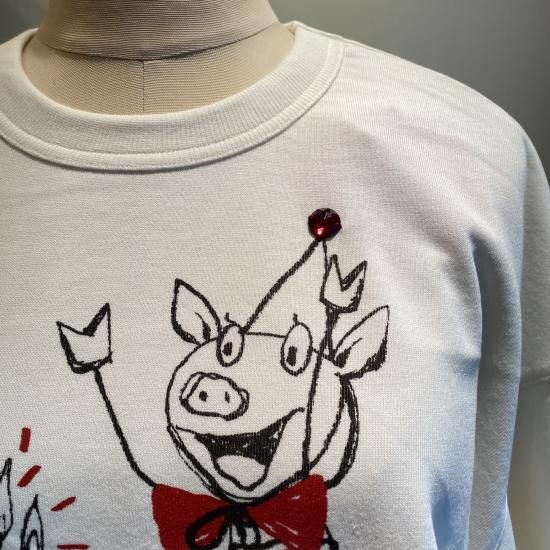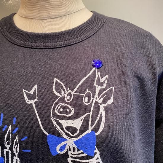 厚すぎないミニ裏毛の柔らかいトレーナーです。ぶたさんのホームパーティープリント♪