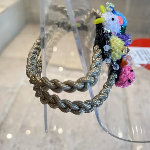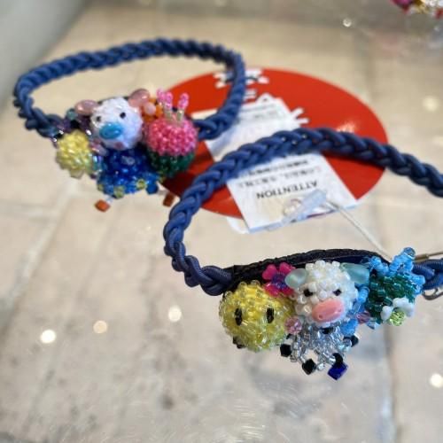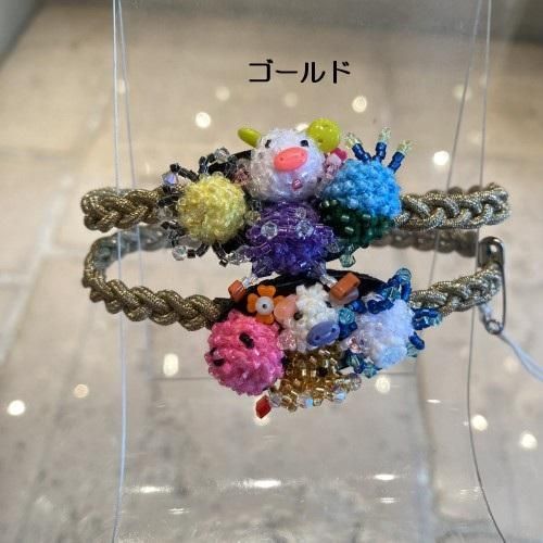 小さなアミアミビーズモチーフがギュッと詰まったアームバンドです。異なるモチーフのセットです♪みんなに自慢したくなりますね。お洗濯不可。日本製。※手づくり品の為個体差がございますのでご了承ください。