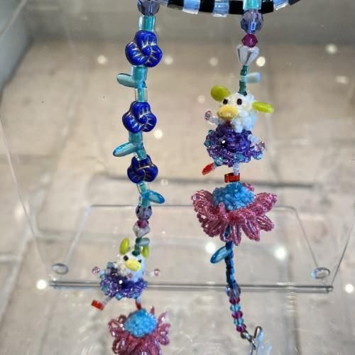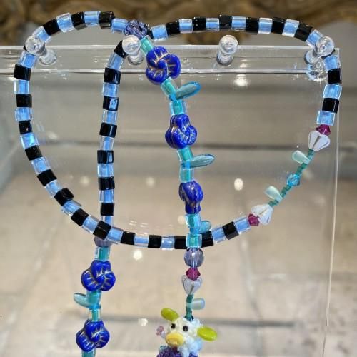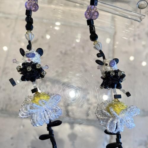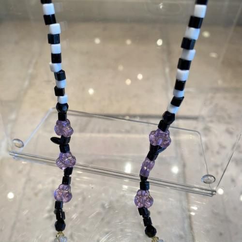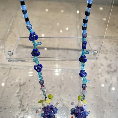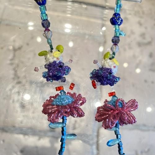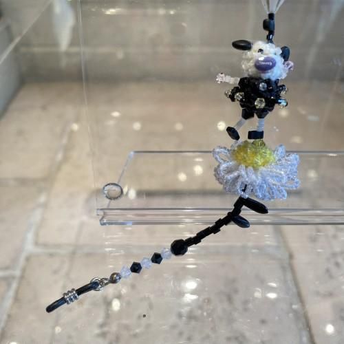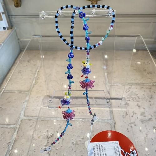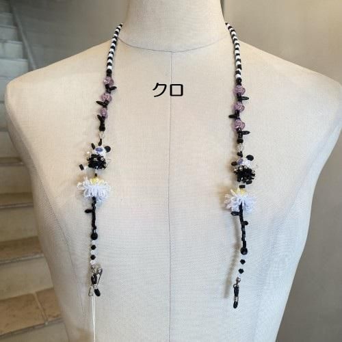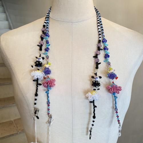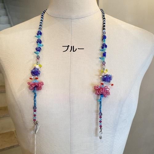 お花とぶたさんの眼鏡ホルダー♪シマシマのビーズが可愛いと思います☆お洗濯不可。日本製。※手づくり品の為個体差がございますのでご了承ください。