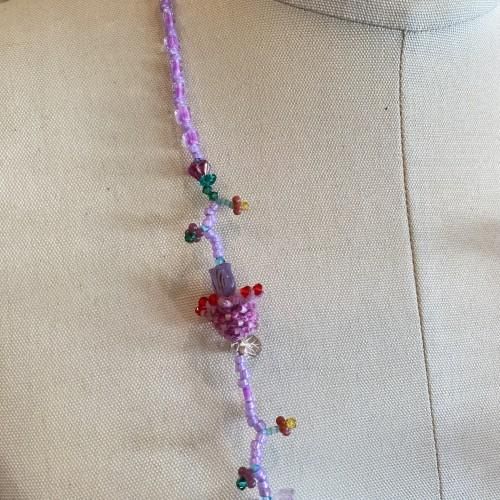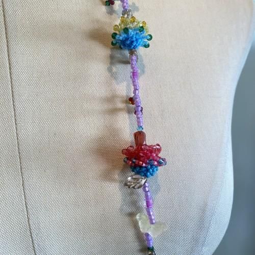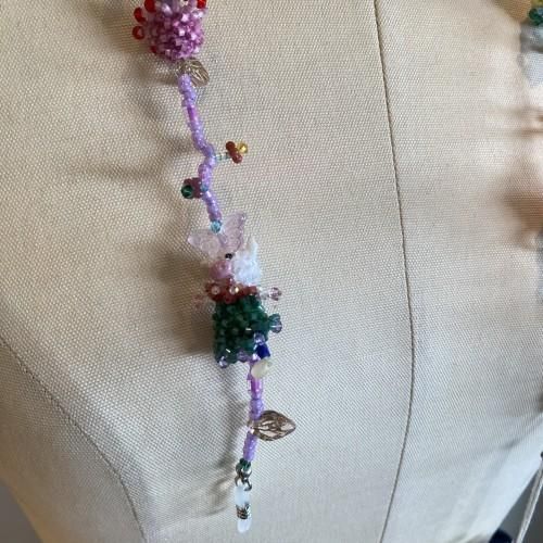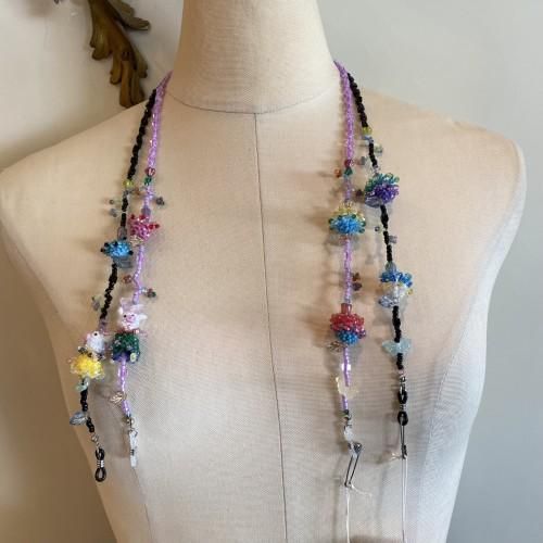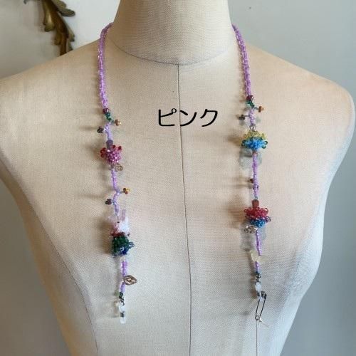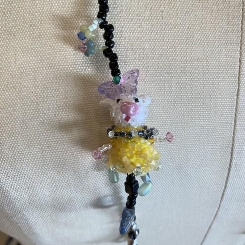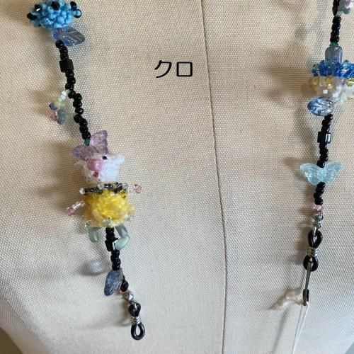 優しい雰囲気の眼鏡ホルダーですね。ビーズ編みのぶたさんとお花が綺麗です♪日本製。※手づくり品の為個体差がございますのでご了承ください。