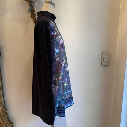 みんなの心に明かりを灯す、ライトアッププリントのコンビチュニックです。プリント面のポリエステル素材にはストレッチはありませんがお袖と後ろ見ごろは綿のカットソー(ZOCCON)を使用しています。暖房の入る季節のコート下には丁度良いと思います。暖かい下着や上着で調節しやすいのもお勧めです。